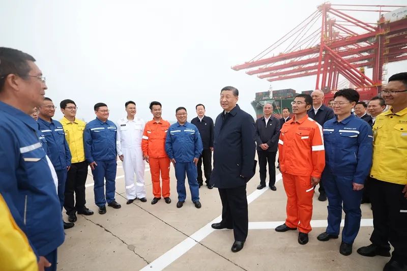5月22日至24日,中共中央總書(shū)記、國(guó)家主席、中央軍委主席習(xí)近平在山東考察。這是22日下午,習(xí)近平在日照港親切慰問(wèn)港口科技工作者、運(yùn)營(yíng)人員、航運(yùn)人員。