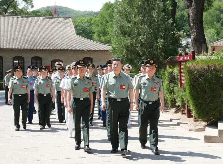 6月17日至19日,中央軍委政治工作會議在陜西延安召開。中共中央總書記、國家主席、中央軍委主席習(xí)近平出席會議并發(fā)表重要講話。這是17日下午,習(xí)近平帶領(lǐng)軍委一班人和各部門各單位主要負責同志瞻仰王家坪革命舊址。新華社記者 李剛 攝