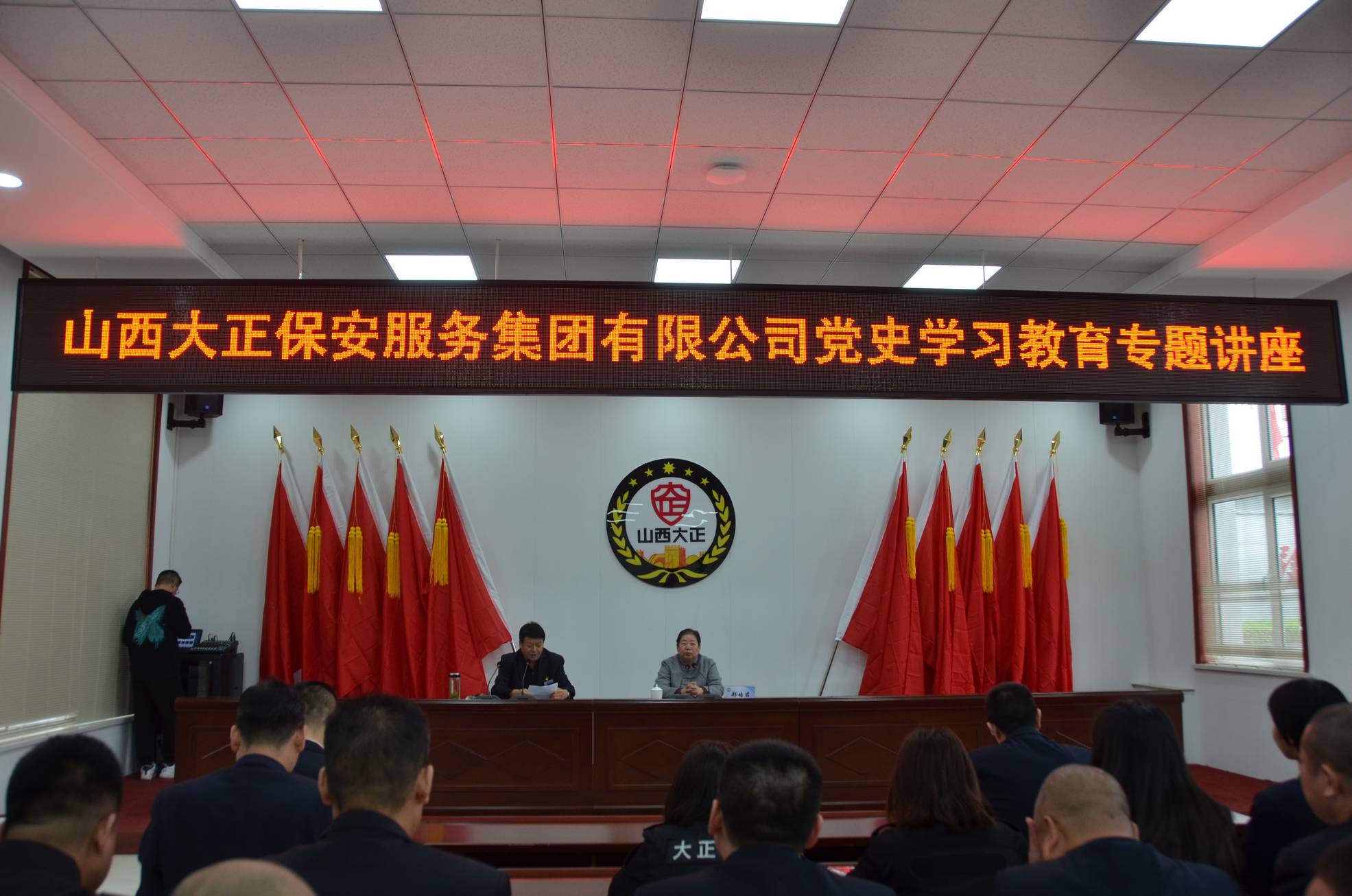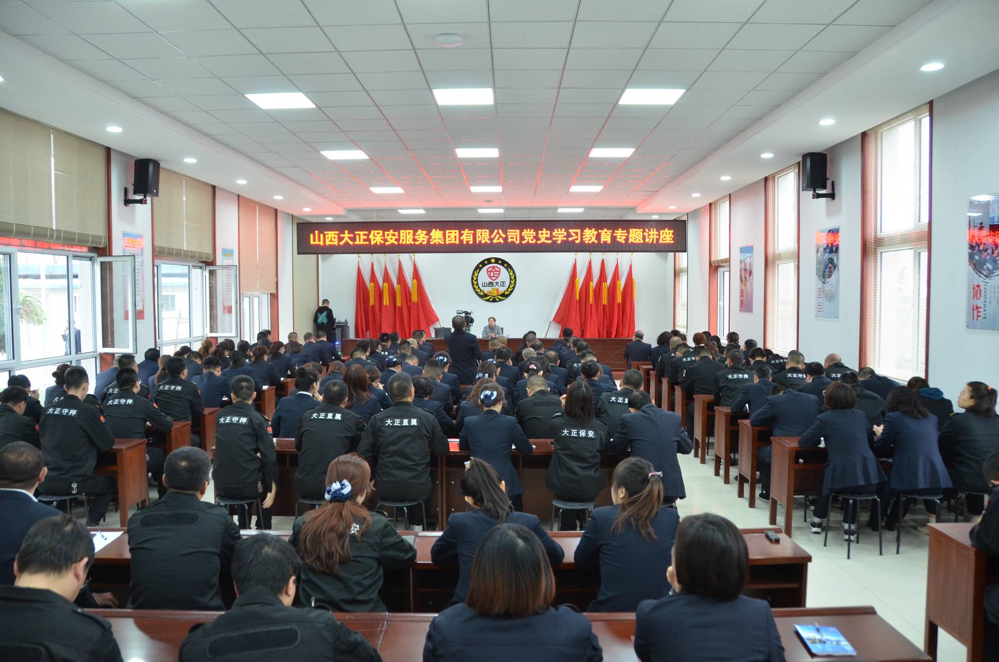 4月21日上午9時,太原市委黨校鄭培君教授應公司黨委邀請蒞臨公司講授黨史知識。市工信局(國資委)黨委委員、二級調研員劉建文,公司領導班子、全體黨員、入黨積極分子、基層中隊長以上及機關部分人員共160余人參加學習。