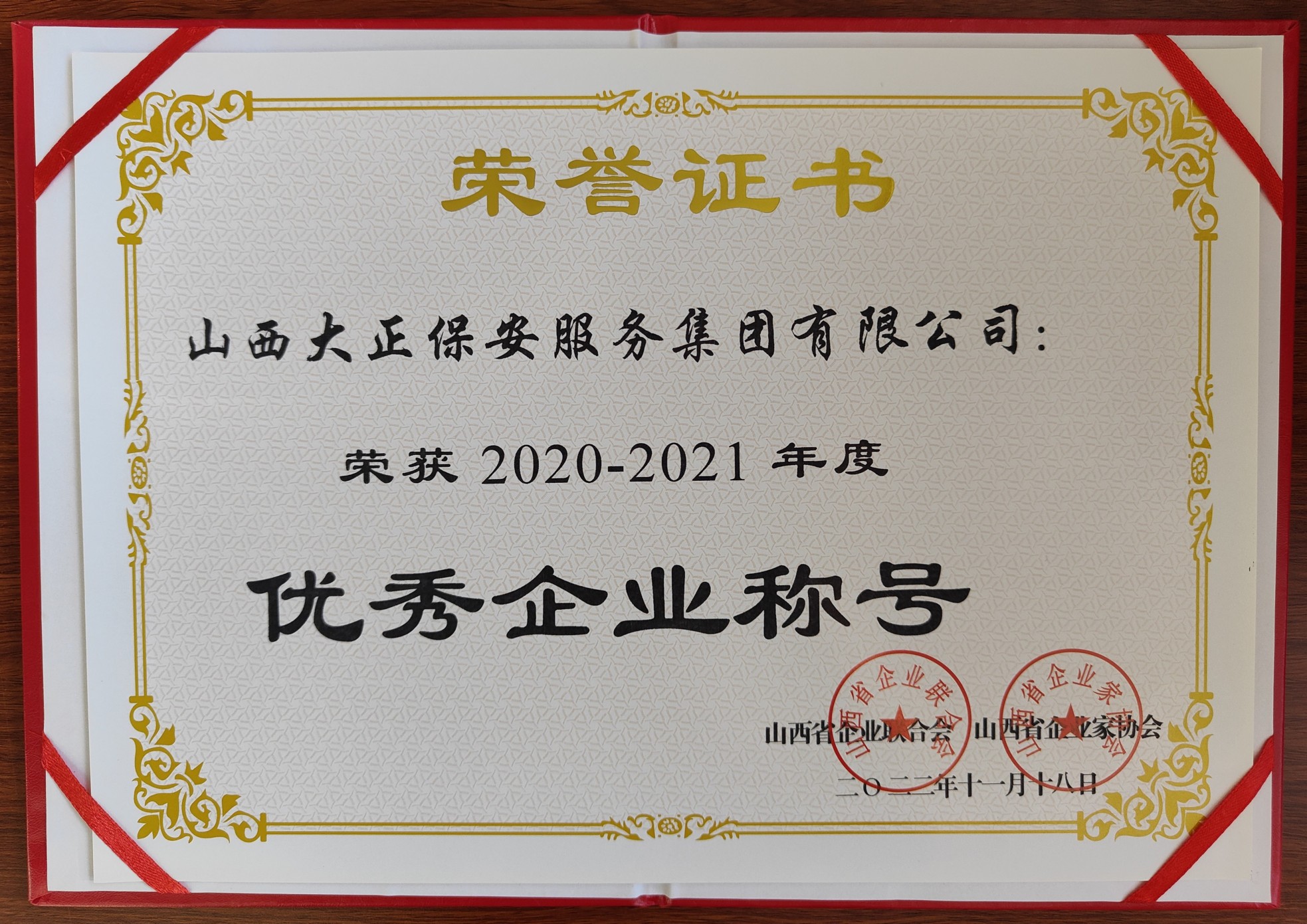 12月20日,山西省企業(yè)聯(lián)合會、山西省企業(yè)家協(xié)會召開第30次年會暨2022山西企業(yè)100強(qiáng)發(fā)布會。山西大正保安服務(wù)集團(tuán)有限公司入圍“2022山西服務(wù)業(yè)企業(yè)100強(qiáng)”、榮獲“2020-2021年度優(yōu)秀企業(yè)”稱號,黨委副書記、總經(jīng)理趙培宏榮獲“2020-2021年度優(yōu)秀企業(yè)家”稱號。