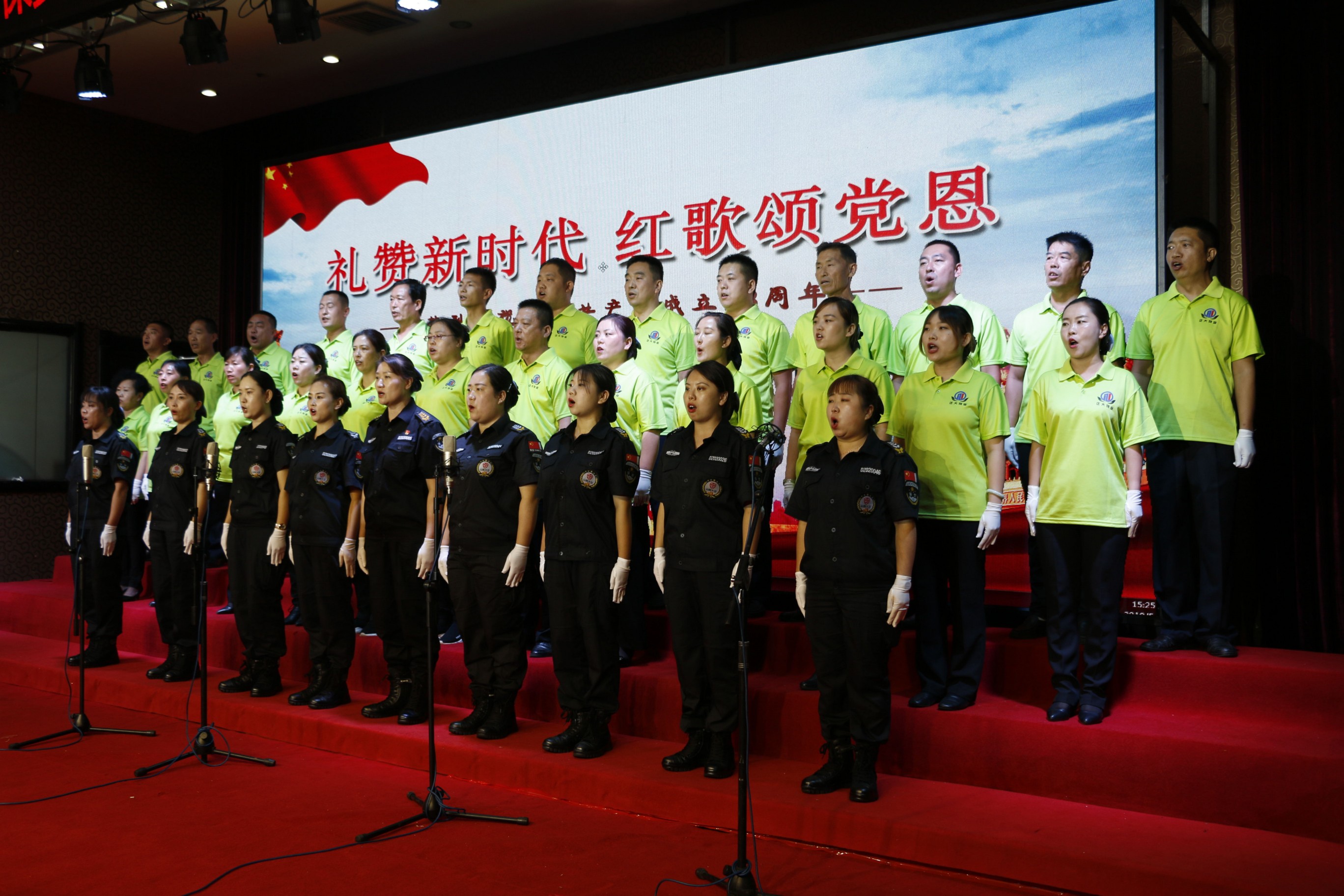 來自機(jī)關(guān)和基層黨支部組成的六支參賽隊(duì)伍,用他們滿腔的熱情和昂揚(yáng)的斗志,歌詠了他們對(duì)黨、對(duì)國家、對(duì)社會(huì)主義及大正保安公司的熱愛!稕]有共產(chǎn)黨就沒有新中國》、《歌唱祖國》、《團(tuán)結(jié)就是力量》、《打靶歸來》等一首首耳熟能詳?shù)馁澑琛⒖廴诵南业臉氛麓似鸨朔,使人聽之熱血沸騰,打動(dòng)著現(xiàn)場(chǎng)每一位觀眾,贏得了陣陣掌聲。