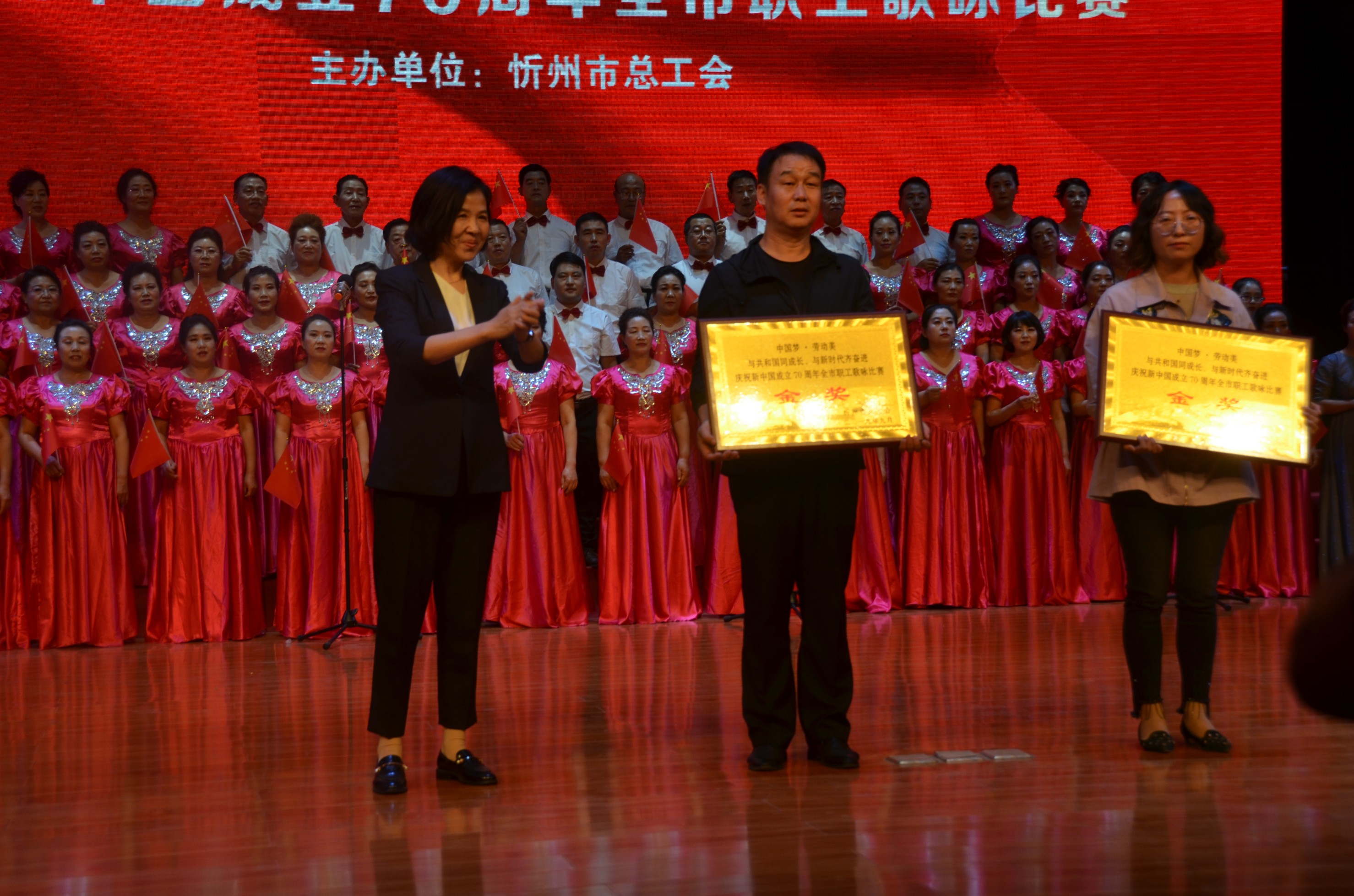 9月19日下午,由忻州市總工會舉辦的以“中國夢·勞動美”與共和國同成長 與新時代齊奮進(jìn)為主題的慶祝中華人民共和國成立70周年全市職工歌詠比賽在忻州市職業(yè)技術(shù)學(xué)院正式拉開帷幕。我公司組隊(duì)參加并喜獲金獎。公司黨委書記、董事長張躍生,黨委副書記、副總經(jīng)理陳志平,黨委委員、副總經(jīng)理趙培宏現(xiàn)場觀賽為參賽隊(duì)員加油鼓勁。