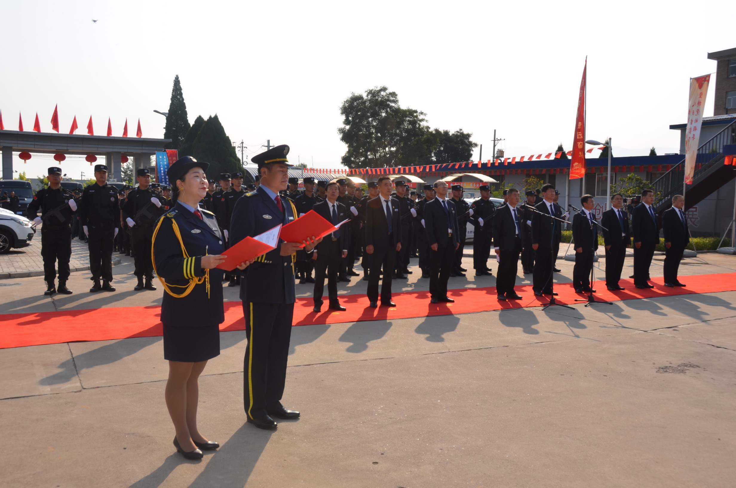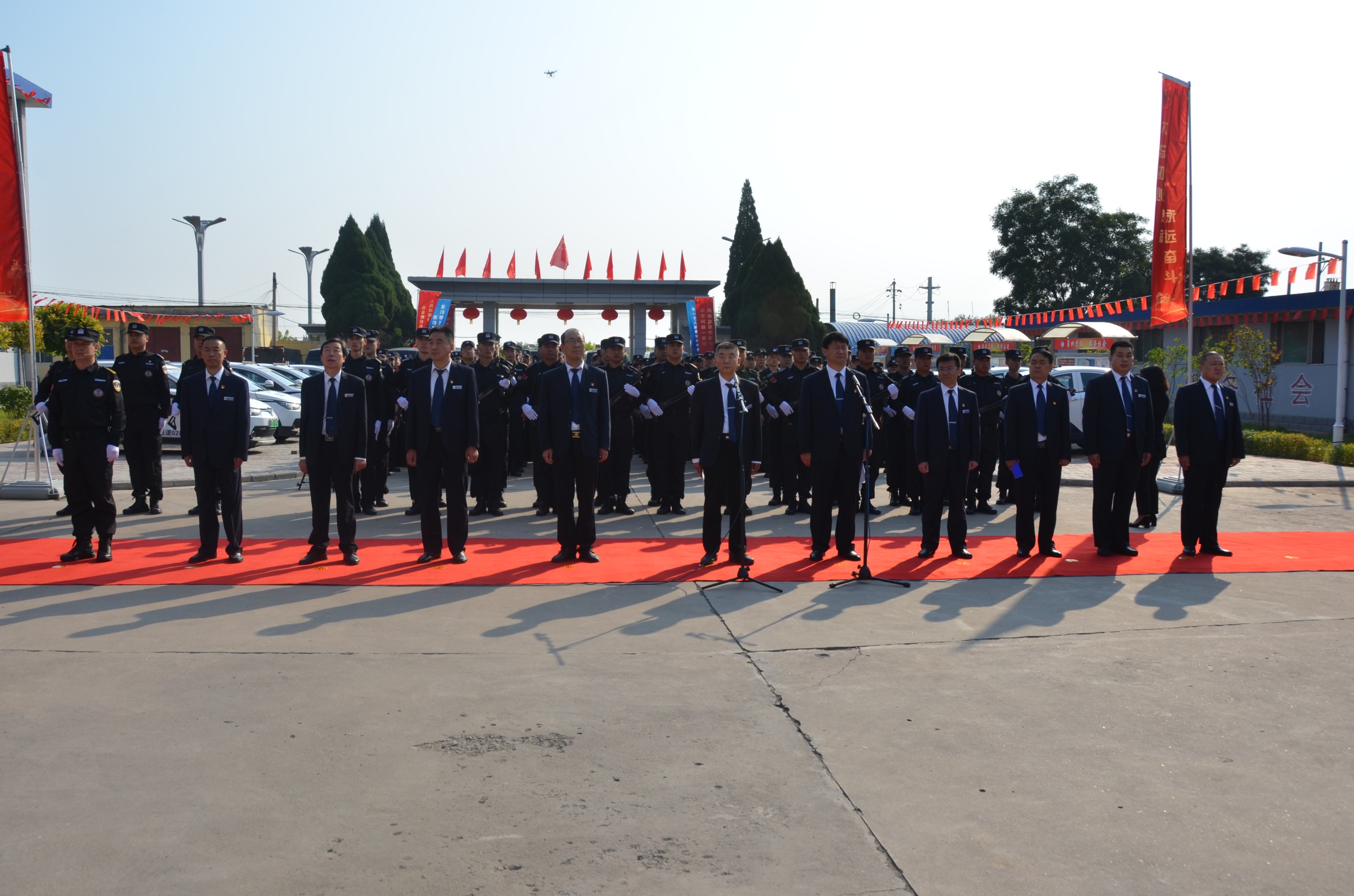 在中華人民共和國成立70周年即將來臨之際,為進(jìn)一步提高廣大干部職工的愛國意識,營造濃厚的愛國愛企氛圍,激發(fā)正能量、提升凝聚力。9月27日,山西大正保安服務(wù)有限公司在公司城南駐地隆重舉行莊嚴(yán)的升旗儀式。黨委書記、董事長張躍生作重要講話,公司黨委委員、副總經(jīng)理趙培宏主持升旗儀式。王明生、邢春生、張瑞東、呂雙明等公司領(lǐng)導(dǎo)、機(jī)關(guān)各單位及基層九個(gè)分公司的400余名干部職工參加儀式。