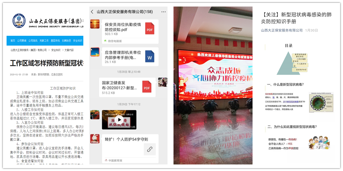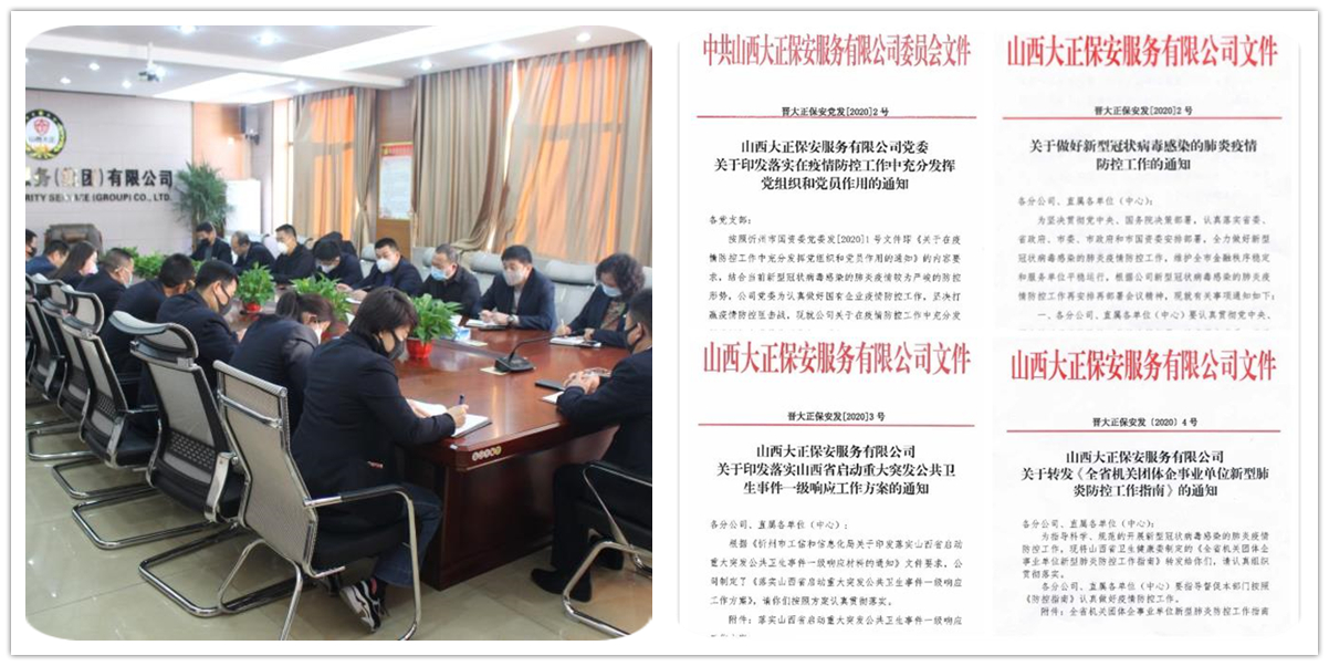 新型冠狀病毒肺炎疫情爆發(fā)以來(lái),山西大正保安服務(wù)有限公司堅(jiān)決貫徹黨中央、國(guó)務(wù)院決策部署,深入貫徹省委、省政府,市委、市政府和市國(guó)資委安排部署,認(rèn)真落實(shí)“堅(jiān)定信心、同舟共濟(jì)、科學(xué)防治、精準(zhǔn)施策”的總要求,根據(jù)企業(yè)實(shí)際情況周密安排部署,多措并舉扎實(shí)推進(jìn)企業(yè)疫情防控工作。