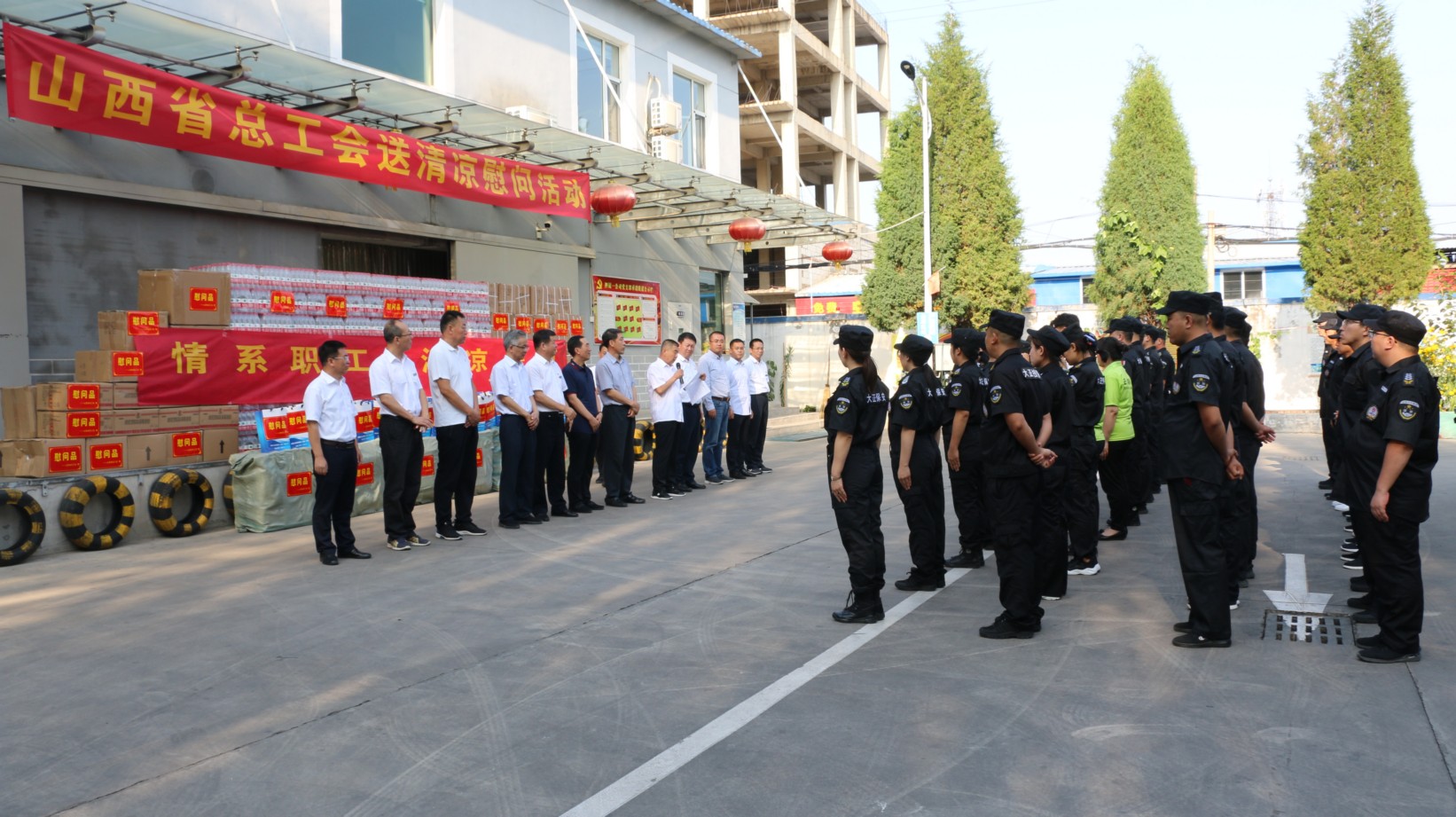 7月27日下午,省、市兩級(jí)總工會(huì)領(lǐng)導(dǎo)蒞臨我公司舉行“夏季送清涼”慰問活動(dòng),為堅(jiān)守在一線的職工朋友們送上夏日的關(guān)懷與問候,同時(shí)為職工朋友們贈(zèng)送一批防暑用品和對(duì)公司困難職工進(jìn)行慰問。省總工會(huì)黨組成員、副主席張亞琳;省總工會(huì)經(jīng)濟(jì)技術(shù)部副部長高偉;市人大副主任、市總工會(huì)主席魏廣才;市總組黨組書記、常務(wù)副主席王書鴻;市總工會(huì)副主席曲文斌;市總工會(huì)副主席左文蕾;公司黨政班子成員參加此次活動(dòng)。活動(dòng)由山西大正保安服務(wù)有限公司黨委書記、董事長張躍生主持。