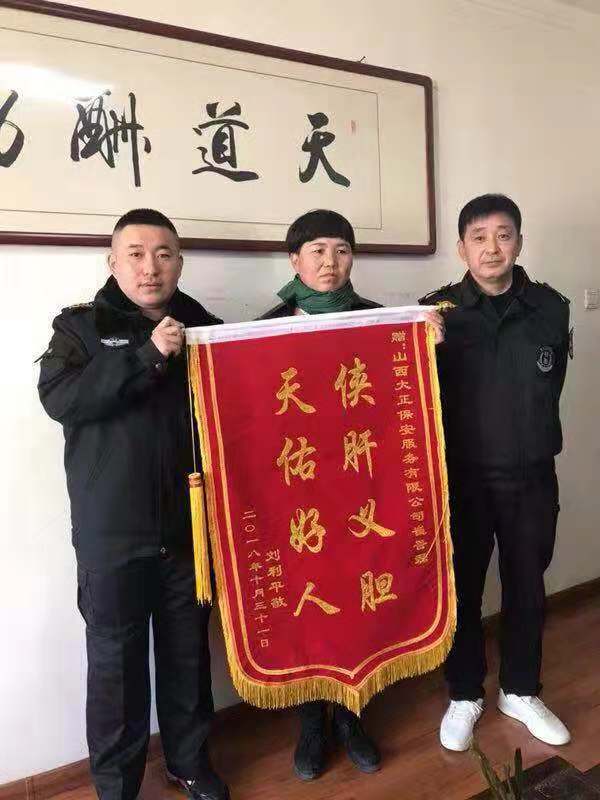 10月31日上午,阿姨拿著一面寫著“俠肝義膽、天佑好人”錦旗送到公司,并哭著對大家說:真要謝謝這個好同志對我的體諒和幫助,正是這樣優(yōu)秀的公司才能培養(yǎng)出道德高尚、人品過硬、助人為樂的人才。