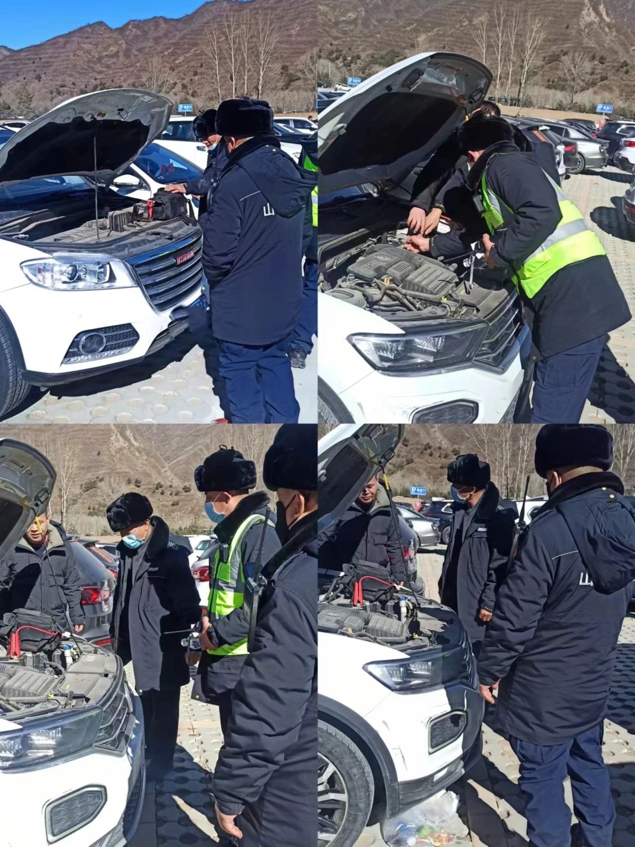 在這樣一個人流密集的地方執(zhí)勤,意味著要時刻保持高度的警覺和熱情的服務(wù)。執(zhí)勤期間,隊員在巡視停車場時,發(fā)現(xiàn)了一輛私家車主焦急地圍著自己的車輛打轉(zhuǎn)。原來,這輛車因長時間停放導(dǎo)致電瓶虧電,無法啟動。執(zhí)勤隊員立即上前詢問情況,并利用隨車攜帶的跳線,幫助游客成功搭電點(diǎn)火,解決了游客的燃眉之急