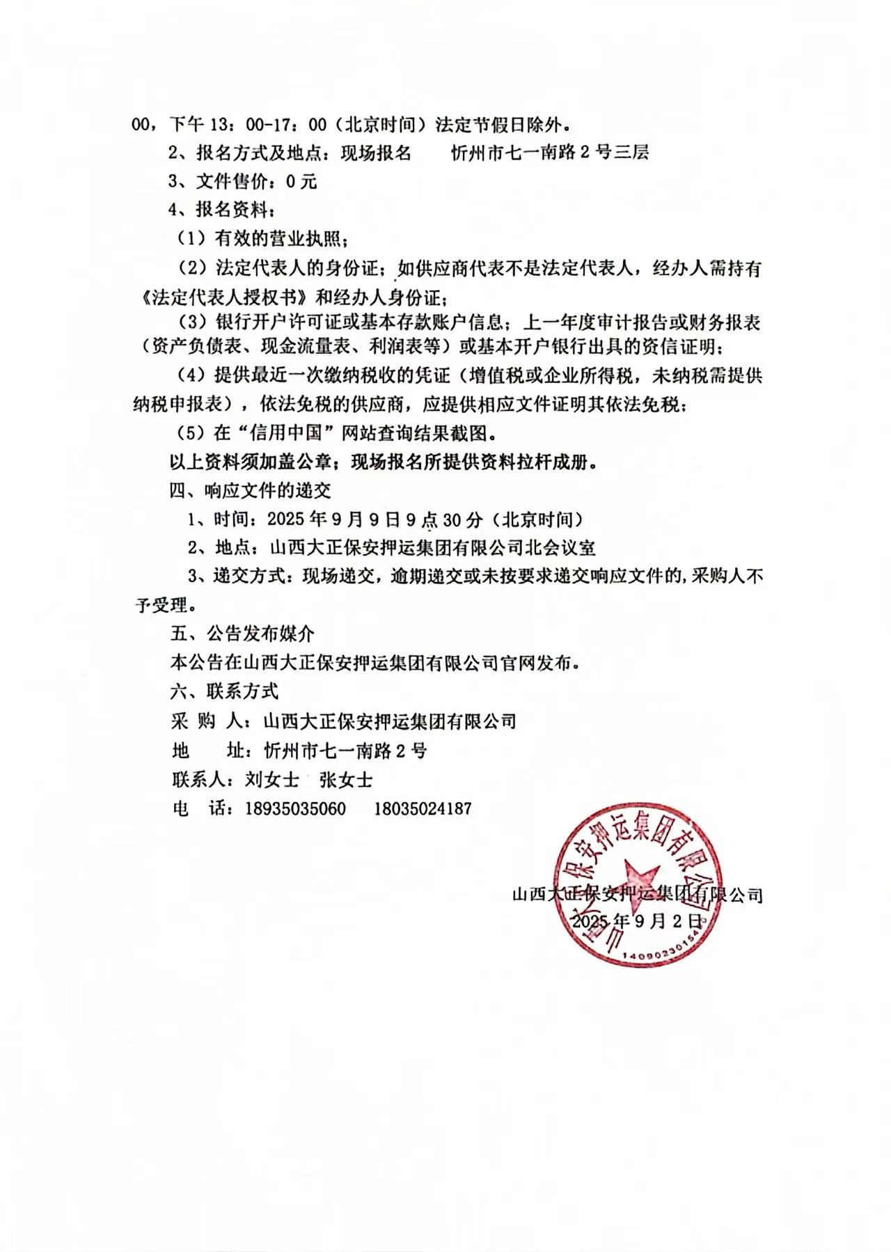 山西大正保安押運(yùn)集團(tuán)有限公司