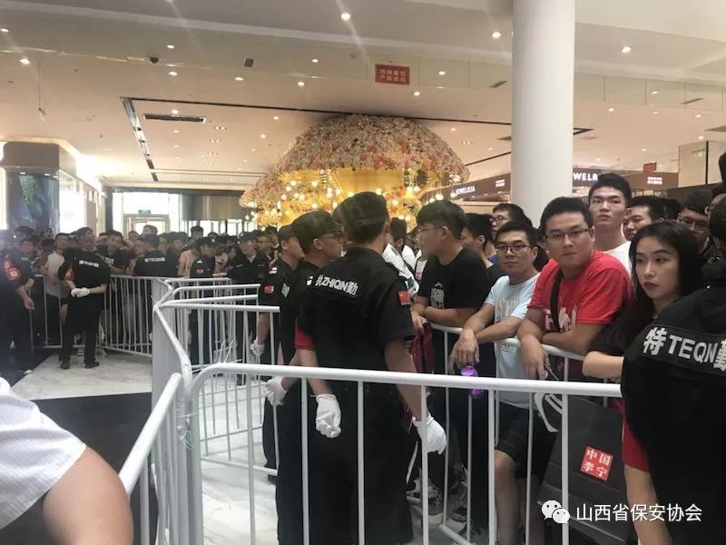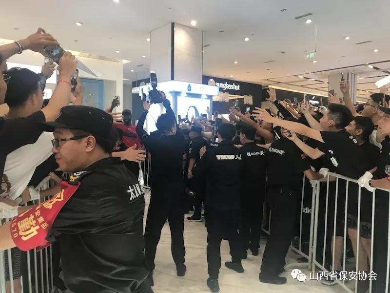 2018年7月15日,美國NBA著名球星德維恩-韋德“2018年中國行”品牌代言簽售會(huì)第三站在省會(huì)太原茂業(yè)天地隆重舉行,由于韋德作為籃球明星偶像,在中國知名度、關(guān)注度、影響力較高,深受青少年球迷的喜愛,粉絲眾多,加之活動(dòng)現(xiàn)場又在人員密集的商場內(nèi)舉辦,不確定因素增猛,安保難度加劇,為確保活動(dòng)安全順利進(jìn)行,按照太原市公安局的安排部署,太原保安服務(wù)有限公司抽調(diào)300余名保安員承接了此次安保任務(wù)。