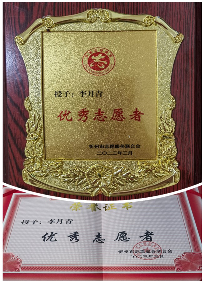 山西大正集團(tuán)公司李月青榮獲忻州市志愿服務(wù)聯(lián)合會(huì)2022年度“優(yōu)秀志愿者”榮譽(yù)稱(chēng)號(hào),并作為志愿者團(tuán)隊(duì)代表發(fā)言。