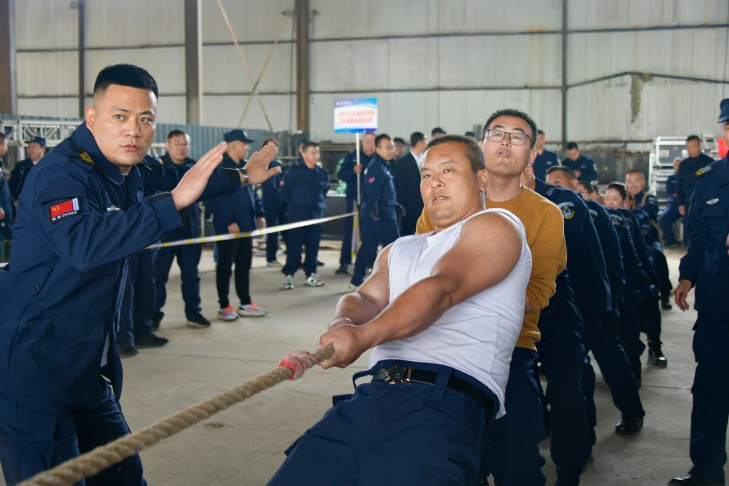 參賽隊員們個個卯足干勁,摩拳擦掌,商討戰(zhàn)術(shù)。“預(yù)備!”當比賽的哨聲響起,只見參賽的隊員們緊握長繩,一個個重心下移,凝神聚氣,鉚足了勁向后拉,為自己的隊伍拼盡全力。領(lǐng)隊和啦啦隊吶喊加油,哨子聲、吶喊聲、此起彼伏,他們心往一處想,勁往一處使,力往一處用,一根繩,一條心,迸發(fā)出的是身體中無限的潛力。無論是場上還是場下,氣氛異常激烈,吶喊助威給比賽增添了一抹亮色,每一聲吶喊都帶來了一股力量。熱烈的競賽氛圍一浪勝過一浪,賽場已然是一片歡樂的海洋,處處洋溢著參與活動的喜悅和團結(jié)友愛、拼搏向上的面貌。