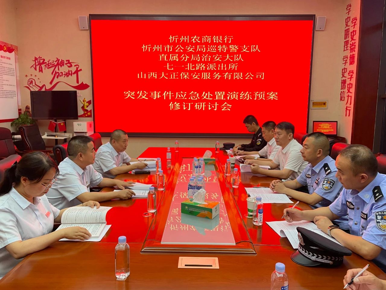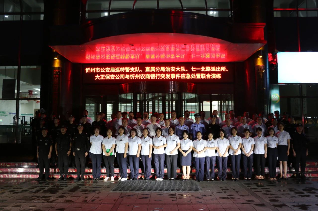 6月26日,山西大正億通保安安全技術有限公司與忻州農商銀行和平西街營業(yè)部聯(lián)合舉行銀行自助設備防打砸損壞、防非法安裝設備聯(lián)合應急演練,山西大正保安服務集團有限公司黨委書記、董事長趙培宏、農商行黨委書記、董事長張磊出席并講話,山西大正億通保安安全技術有限公司經理郭二平出席部署會。農商行營業(yè)點全體安保人員及農商行保衛(wèi)部全員等相關工作人員參加演練部署會。演練還特邀忻州市公安局巡特警支隊、直屬分局治安支隊、七一北路派出所等民警對演練進行現場指導并配合演練。
