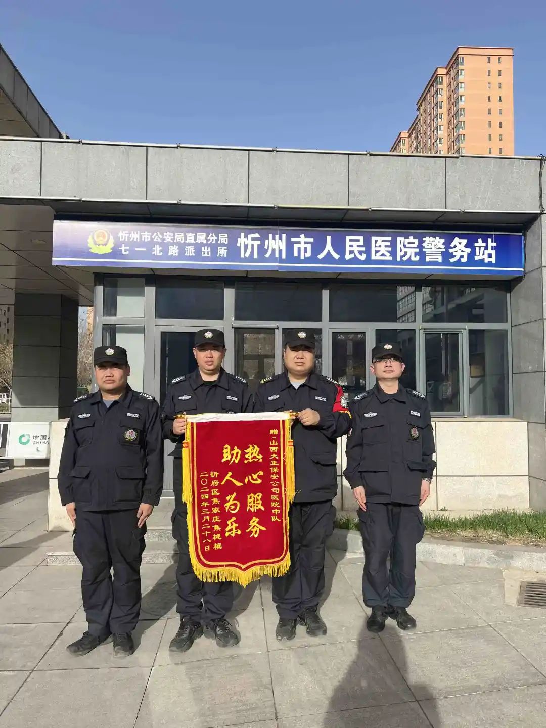 市人民醫(yī)院駐勤點中隊長期以來守職盡責(zé)、細(xì)查安全隱患,在面對不法分子毫不退怯,全力保護(hù)醫(yī)護(hù)人員不受傷害。對廣大患者的困難,主動伸手、幫助他人。市醫(yī)院駐勤中隊的行為,為山西大正樹立起敬業(yè)、友善的良好風(fēng)尚。他們堅守在醫(yī)院安保一線,更是在后方,成為醫(yī)護(hù)人員和患者最堅實的壁壘。他們是一支堅定而又溫暖有力量的隊伍,24小時的堅守,成為了醫(yī)院最堅定的守護(hù)者。