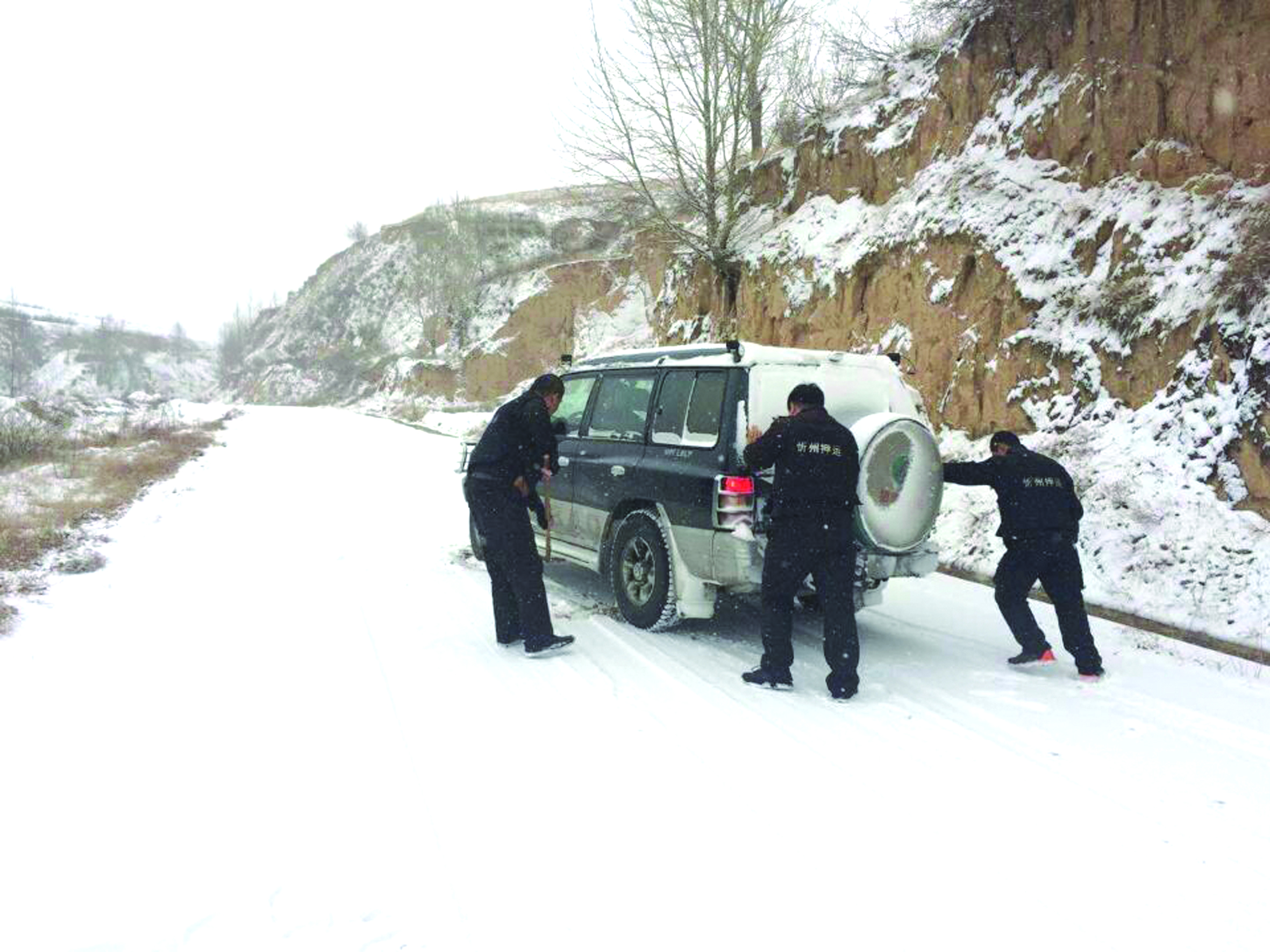 行車到山區(qū)路段,大雪封路,車長馬上安排隊(duì)員下車鏟雪開路,就這樣邊走邊鏟,終于在預(yù)定時(shí)間內(nèi)給客戶單位安全送到。