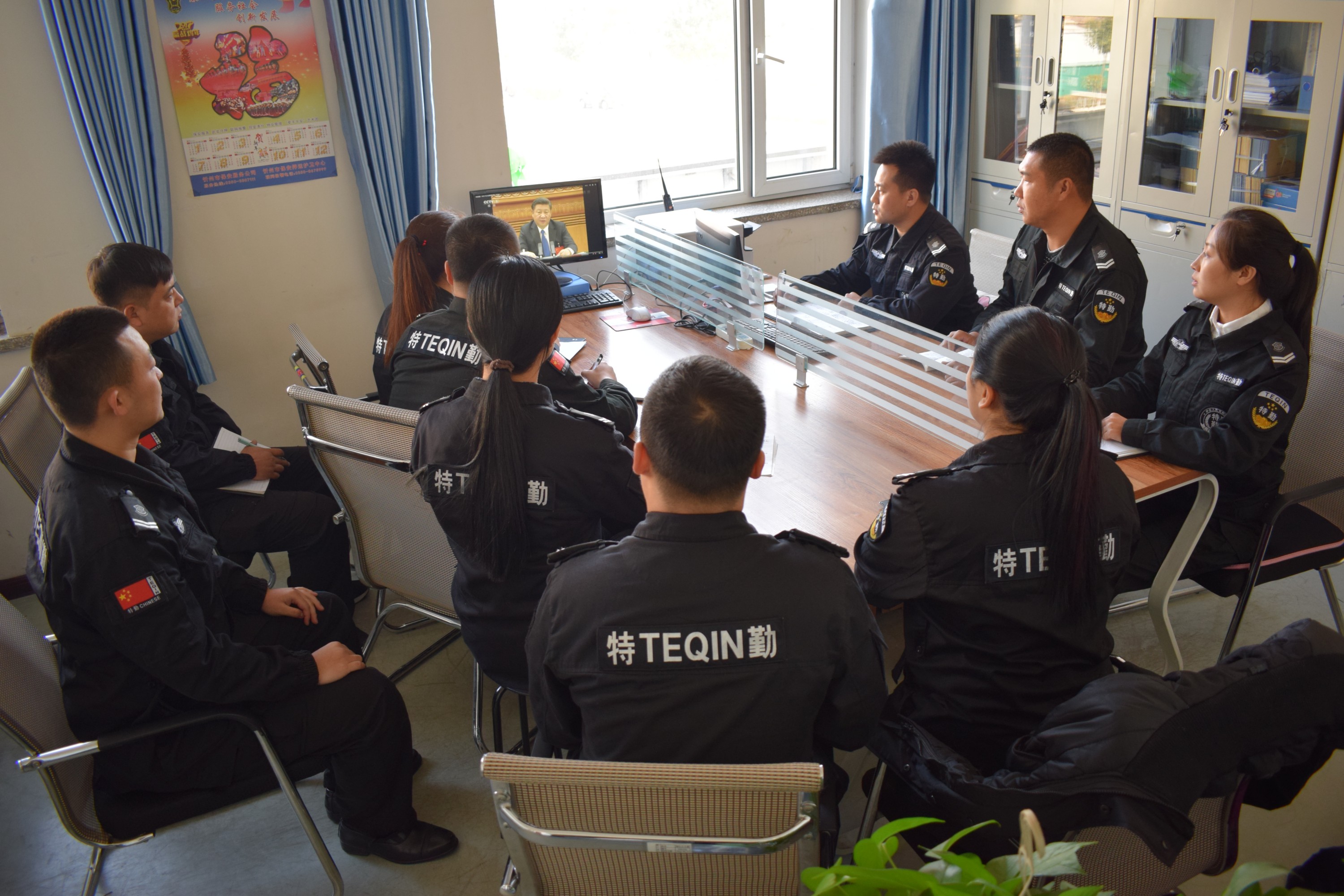 10月23日,在特勤支隊支隊長賈晉的帶領(lǐng)下,支隊領(lǐng)導(dǎo)組織城區(qū)、縣區(qū)各中隊隊長在支隊辦公室觀看十九大開幕式,通過督促學(xué)習(xí)、樹立學(xué)習(xí)榜樣、創(chuàng)新學(xué)習(xí)方式讓大家深刻領(lǐng)悟十九大報告精神。