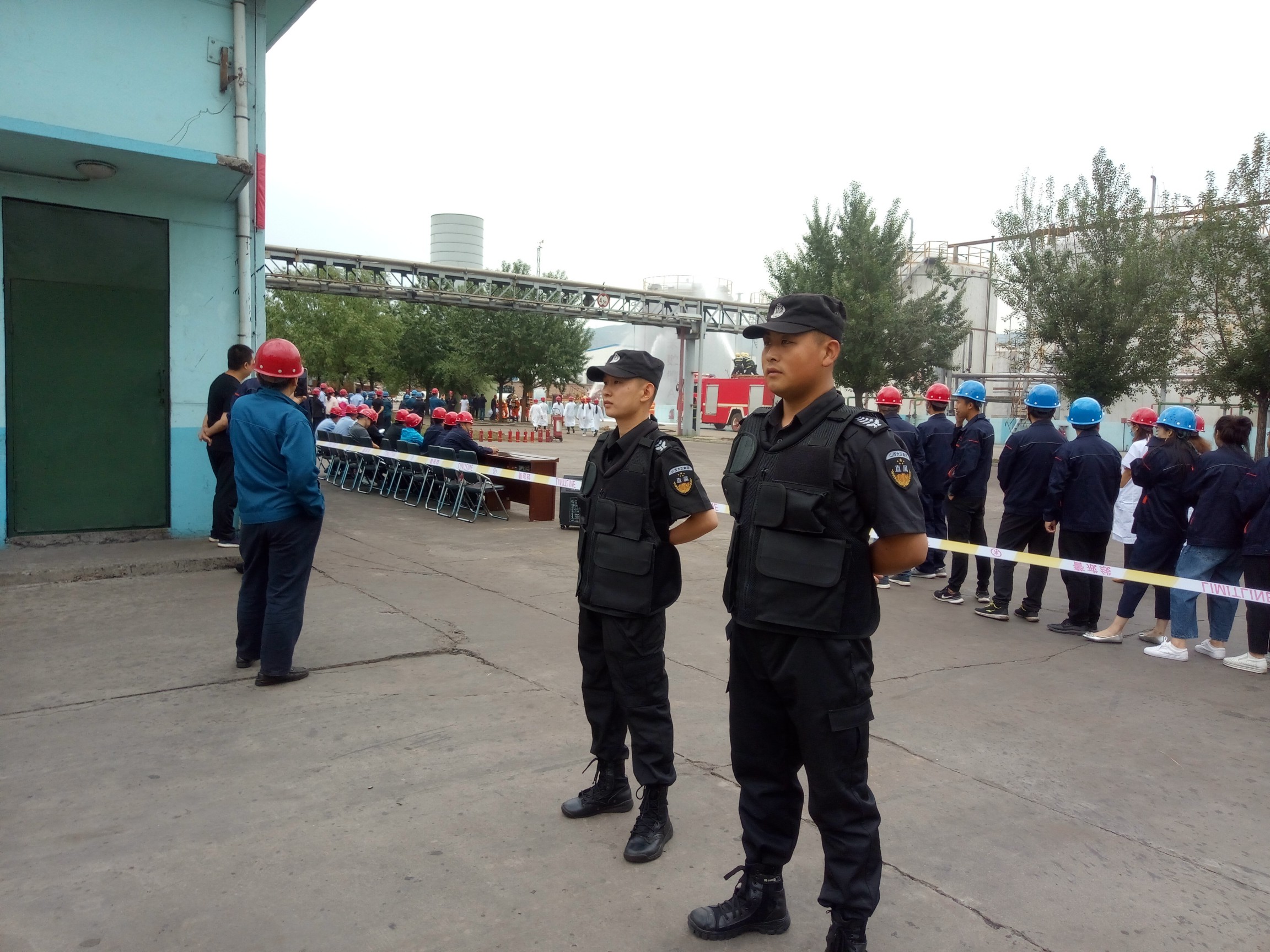 為了提高職工應(yīng)對突發(fā)事件能力,提高對重大危險源緊急事故的應(yīng)急處置技能,降低事故給企業(yè)帶來的財物損失率,減少事故對環(huán)境的影響,保障職工的生命和企業(yè)財產(chǎn)安全。6月15日,鑫宇公司駐勤點組織開展了一次關(guān)于“綜合罐區(qū)粗苯泄露燃燒事故應(yīng)急演練”,本次演練特邀岢嵐消防隊參與,縣安檢局、環(huán)保局等單位領(lǐng)導(dǎo)現(xiàn)場觀摩。在整個演練過程中我直屬隊員承擔(dān)警戒任務(wù),保證演練的順利進(jìn)行。